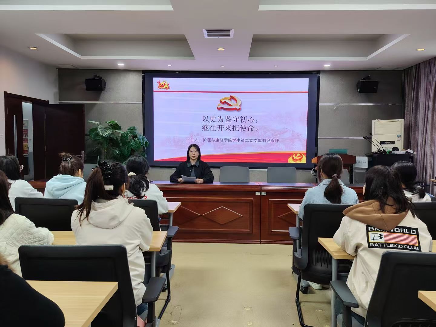 抗战历史中,党以真理为指引,坚定信仰;以民心为根基,践行宗旨;以自我革命为动力,实干担当。这些精神,激励新时代护理党员在工作中坚守初心,为人民健康保驾护航。为深入学习贯彻习近平新时代中国特色社会主义思想,赓续红色血脉、传承优良作风,进一步提升广大学生党员、预备党员的党性修养与使命担当,护理与康复学院学生第二党支部于2025年10月30日在护理与康复学院报告厅开展了以“以史为鉴守初心,继往开来担使命”为主题的党课,学生第二党支部书记阎坤老师担任主讲人。