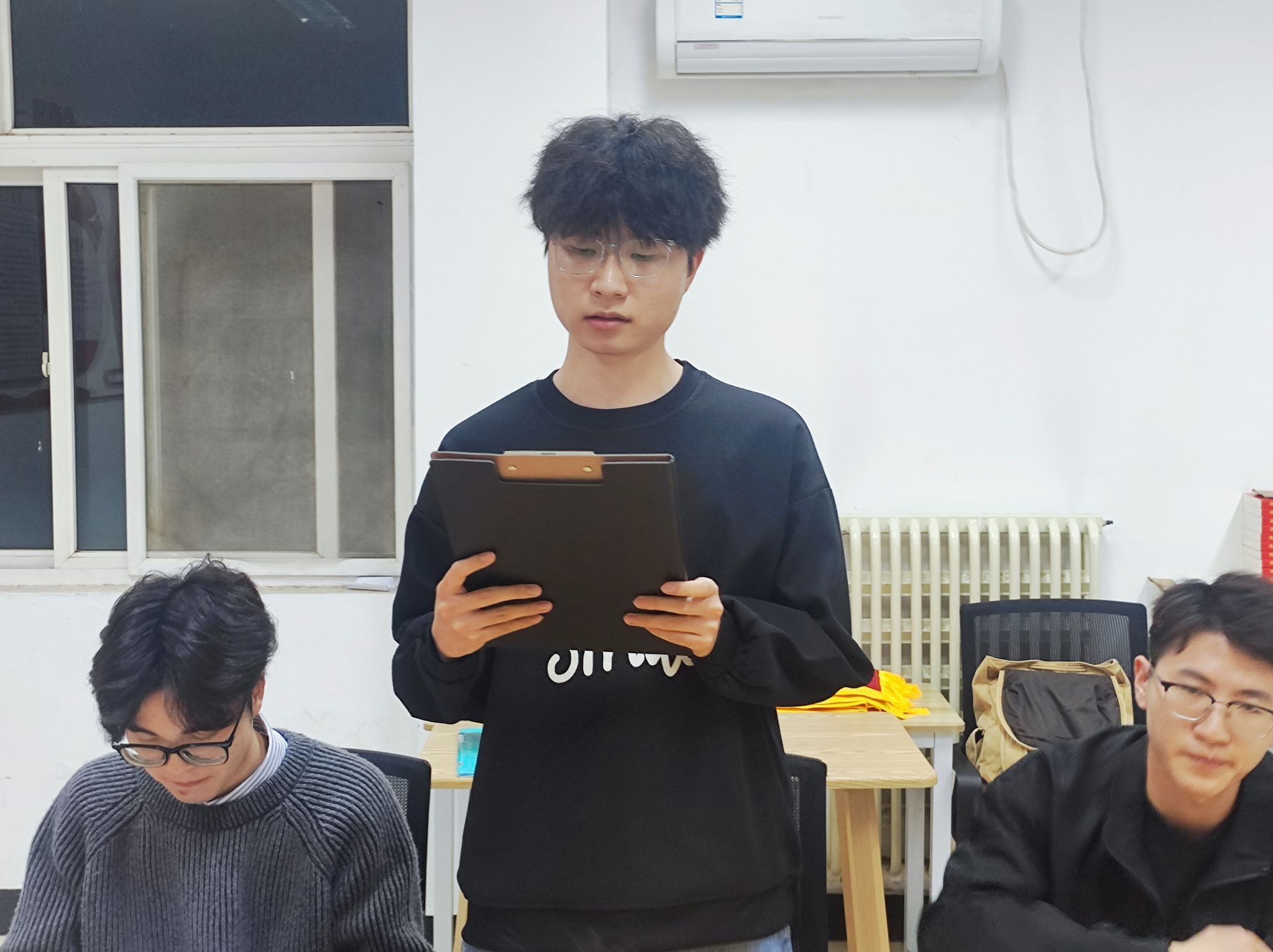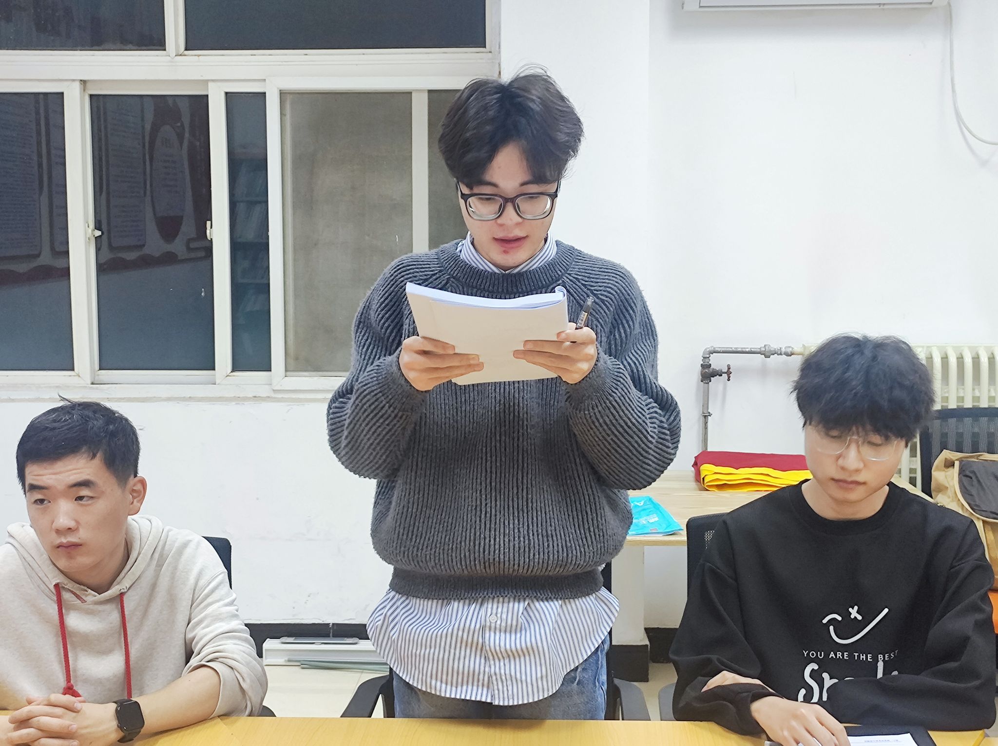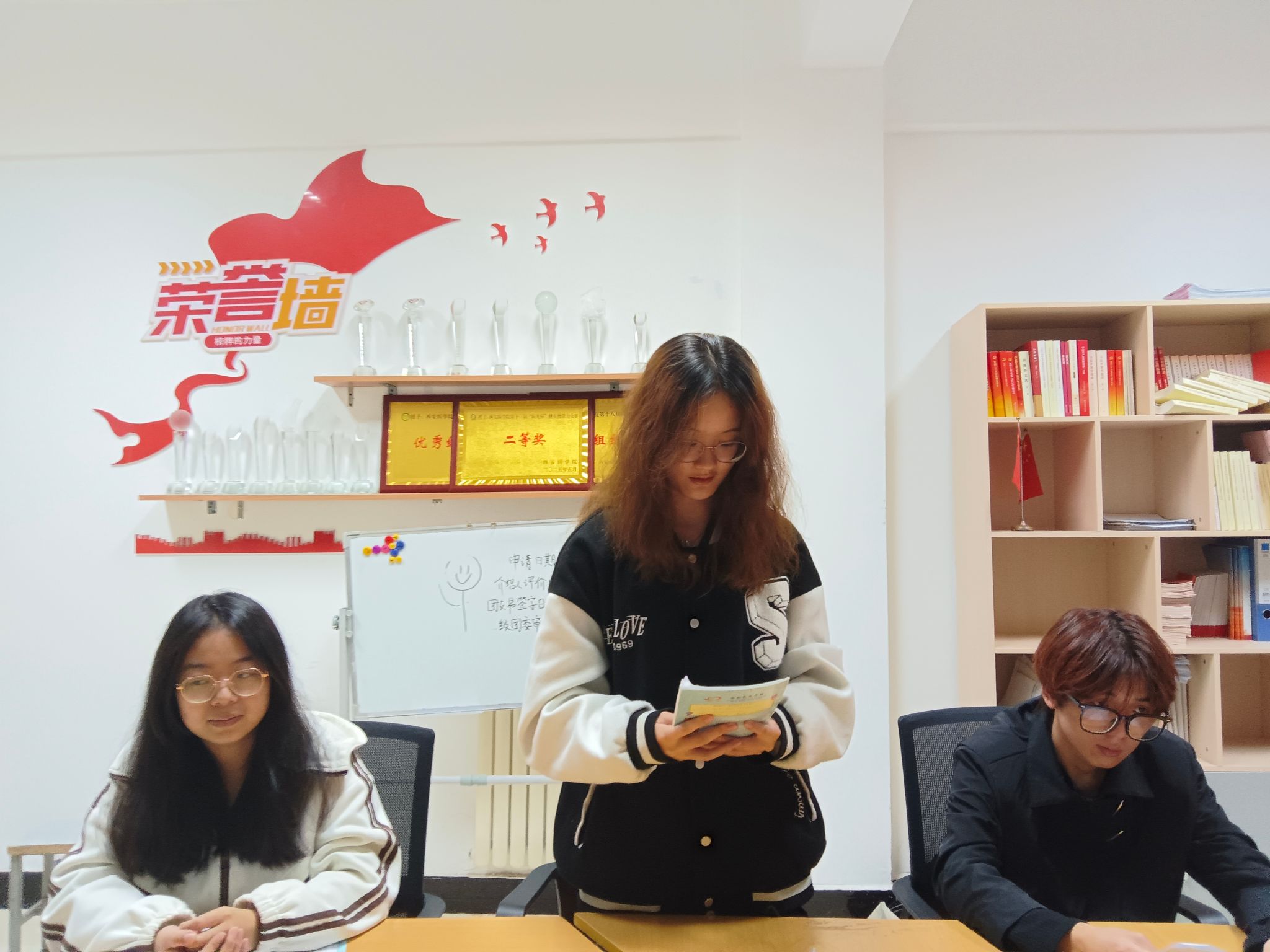 护理2327团支部二号楼北615团小组以青年使命为锚点,成员们在活动中积极分享感想、交流心得。团小组成员手持文稿站在桌前,清晰领学理论要点;两侧的专注凝听,将思想共鸣落在现场的沉静里。他们用多元方式深耕思想、践行担当,让青春底色更显鲜亮。青年的方式诠释着“以学促行”的担当,让信仰在校园里生长为具体的行动力量。