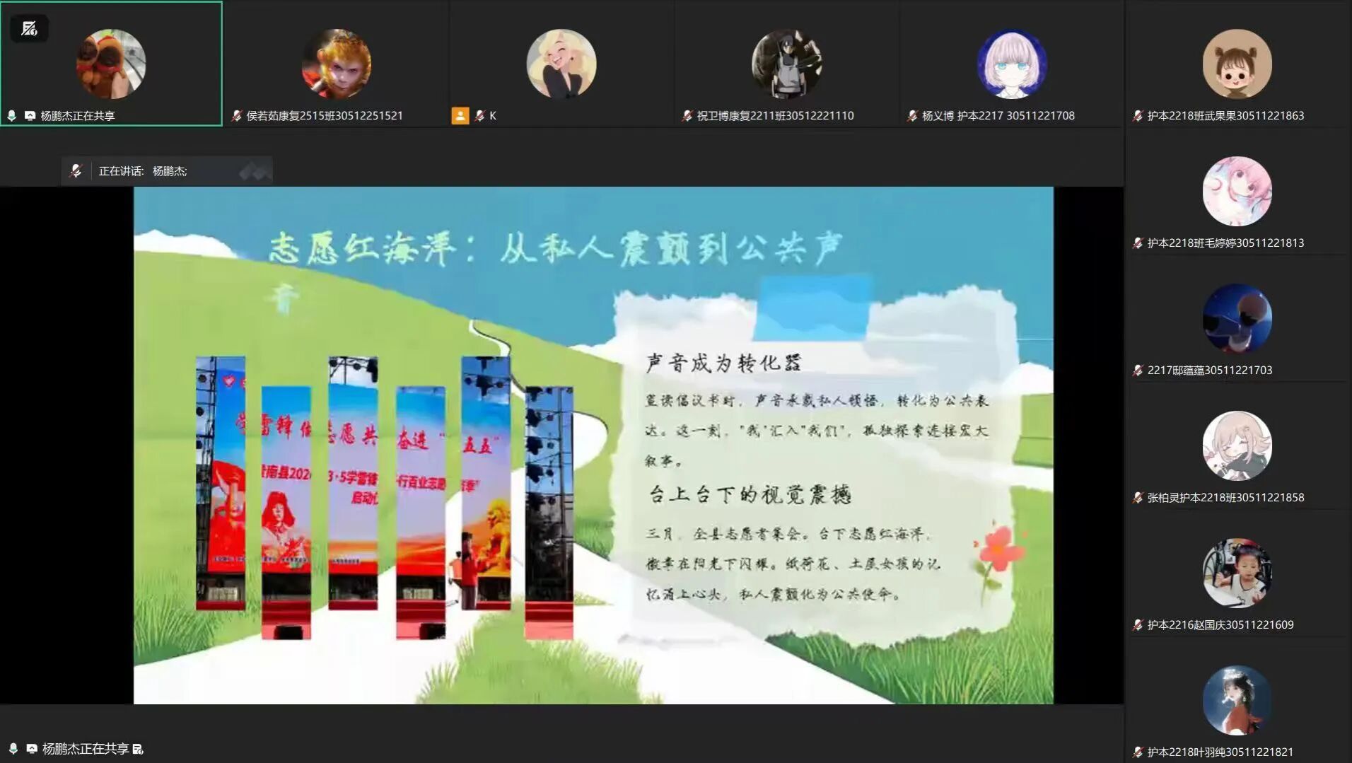 为引导青年学子厚植家国情怀,明晰西部计划志愿服务路径,让青春在祖国最需要的地方绽放绚丽光彩,我院特举办以“西部筑梦·仁心启航”为主题的西部计划志愿者分享交流会,通过线上会议平台顺利举行,特邀优秀毕业生杨鹏杰学长为同学们带来了一场饱含真情、触动心灵的分享。