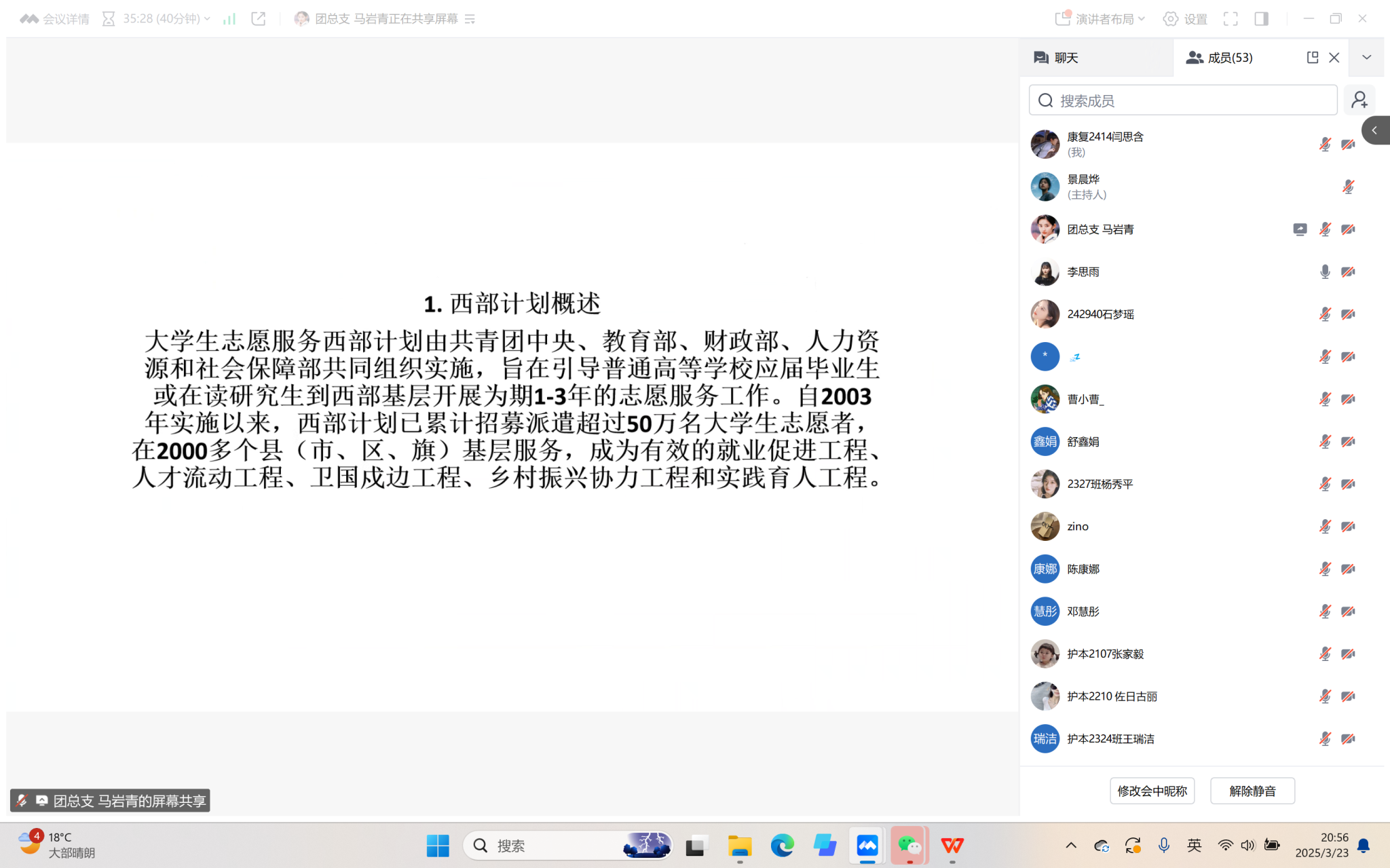 用一年不长的时间,做一件终身难忘的事。此次宣讲会不仅传递了西部计划的政策利好,更以真实故事激发了青年的家国情怀。最后,李思雨热情呼吁护康学院的毕业生们一同加入西部计划的大家族,到西部去,到基层去,到祖国和人民最需要的地方去,在奉献中实现自我人生价值。(文/邓慧彤 张悦 图/护理与康复学院团总支)