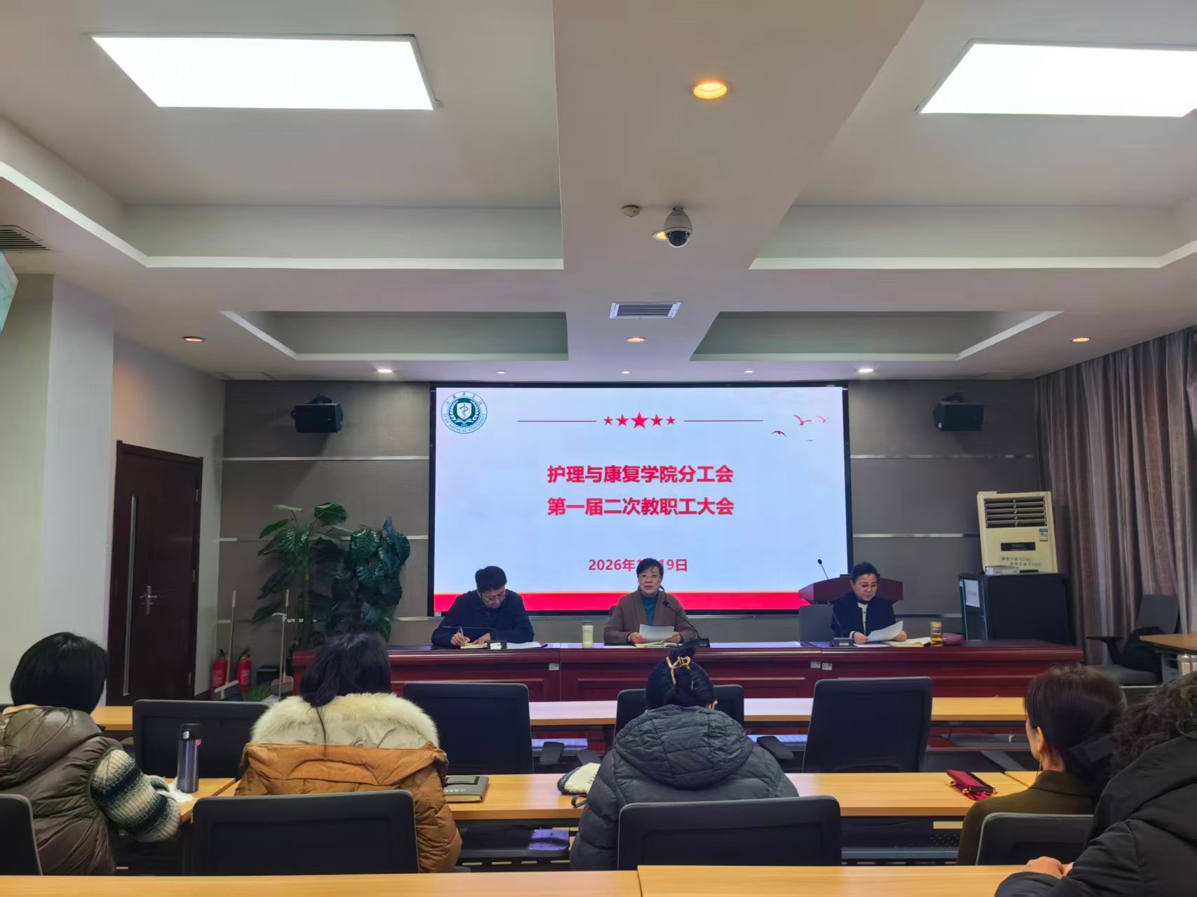 1月19日,护理与康复学院一届二次教职工大会在学院报告厅召开,全体教职工参加会议。护理与康复学院分工会主席刘庆主持会议。