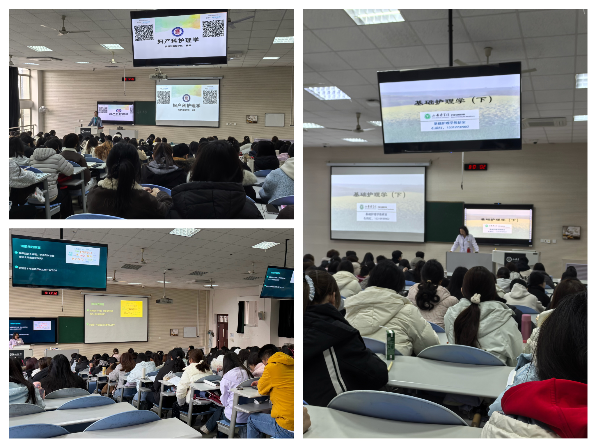 为精准把握新学期教学动态,有效强化教学质量监控,稳步推进教风与学风建设,3月2日,护理与康复学院院长张永爱、党总支书记刘庆、副院长牛育鸿、党总支副书记张俊荔,学院教学督导赵小红、周晓丽、李贞、胡敏华等一行深入课堂,与学生一同聆听“开学第一课”,共同为新学期教学质量保驾护航。