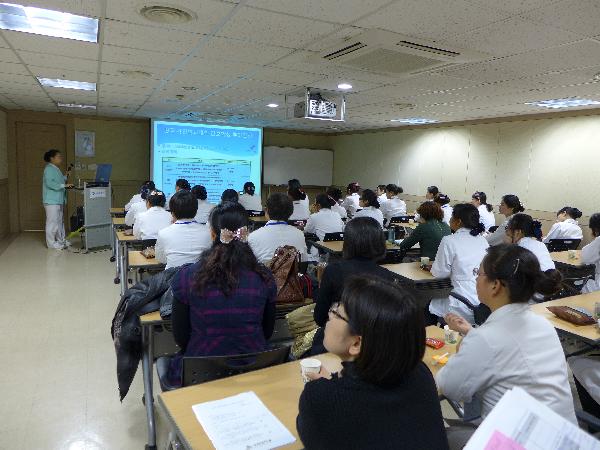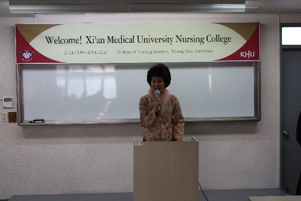 2月10日上午九时,庆熙大学看护学院举行了简短热情的开幕式。首先由看护学院院长Hye Sook Shin教授致欢迎词并对两校之间的学习交流表达了良好祝愿。看护学院为同学们安排了紧张而充实的见习及理论学习日程。在接下来的十多天,同学们相继在庆熙大学庆熙医疗院及江东医疗院进行了32学时的理论学习和医院见习及参观。