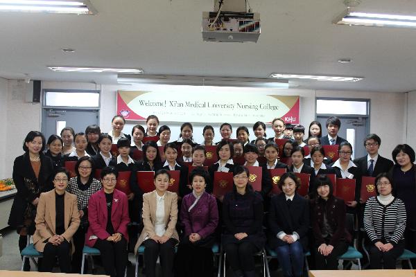 2014年2月9日,我校护理学院第四批32名优秀本科生赴韩国庆熙大学进行了为期12天的访问交流,同学及随行老师都在此次交流活动中增长了知识开拓了眼界。此次活动取得了圆满成功。