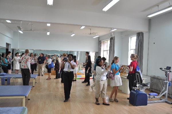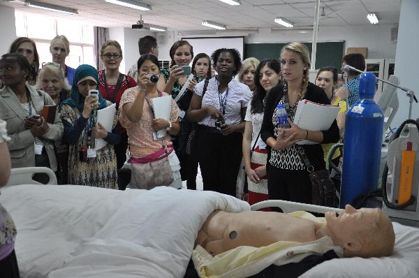 2013年6月10日,美国青年精英护理代表团一行37人来护理学院进行了为期半天的友好交流访问活动。上午9:50在护理学院报告厅举行了庄重简短的迎接仪式。出席的领导和贵宾有护理学院院长张永爱副教授,美国青年精英护理代表团带队教授Nancy Cameron,护理学院教学管理办公室副主任李静,基础护理教研室主任胡敏华讲师,妇产科护理学教研室主任褚静讲师,护理学院实验中心主任王静讲师,还有中美两国护理专业的学生们。迎接仪式由护理学院党政办主任刘庆主持,刘曼玲教授翻译。