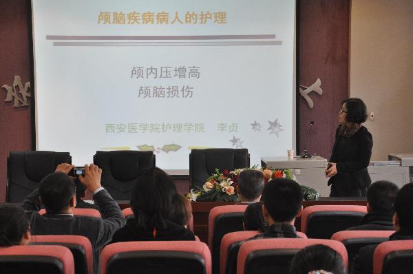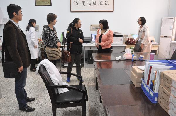 交流当天,护理学院首先安排了主讲教师李贞老师的示范教学,护理学院教师与医院教师探讨了护理教学中存在的一些问题;示范教学活动结束后,在张永爱院长的带领下,参观了基础护理学、内科护理学、妇产科护理学及儿护护理学实践教学平台,在每一个实验室都安排专任教师进行讲解,与参观人员进行互动及教学实景模拟演练,最后医院教师分成5个专业小组,进入各个对应的教研室进行教学研讨、交流学习。下午,应医院老师要求,进入教学楼,进行课堂教学听课、学习。
