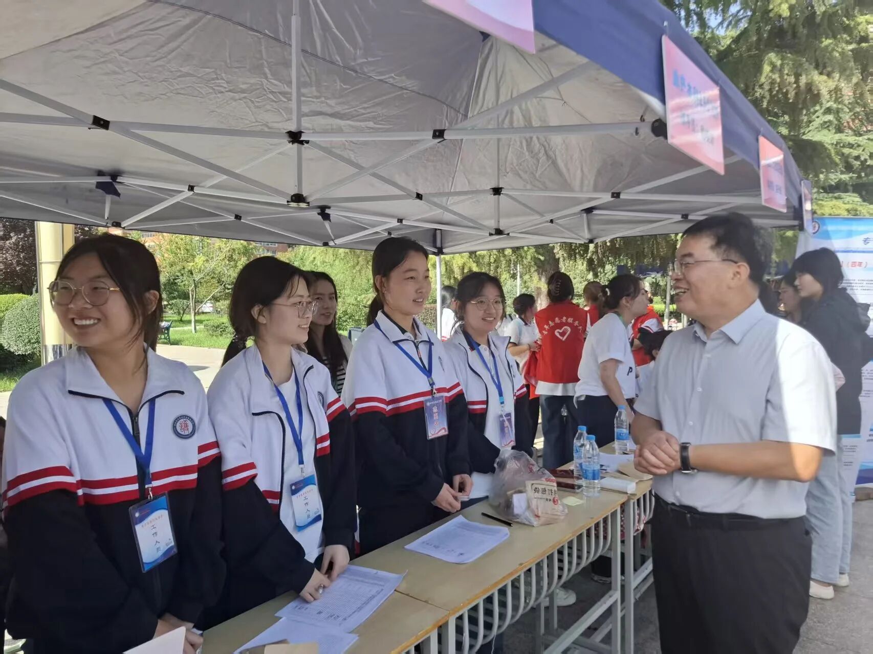 学院高度重视本次迎新工作,精心部署、周密安排。9月7日报到当日,学校及学院领导亲临迎新现场,细致察看注册流程,亲切慰问奋战在一线的师生志愿者,并对大家的辛勤付出表示充分肯定。领导与新生及家长亲切交流,悉心询问入学体验与实际需求,认真听取意见建议,并特别叮嘱工作人员要坚持以生为本,用心用情做好服务保障,确保每位新生高效、顺畅完成入学手续。领导的深切关怀令新生和家长倍感温暖,现场秩序井然、温情洋溢。