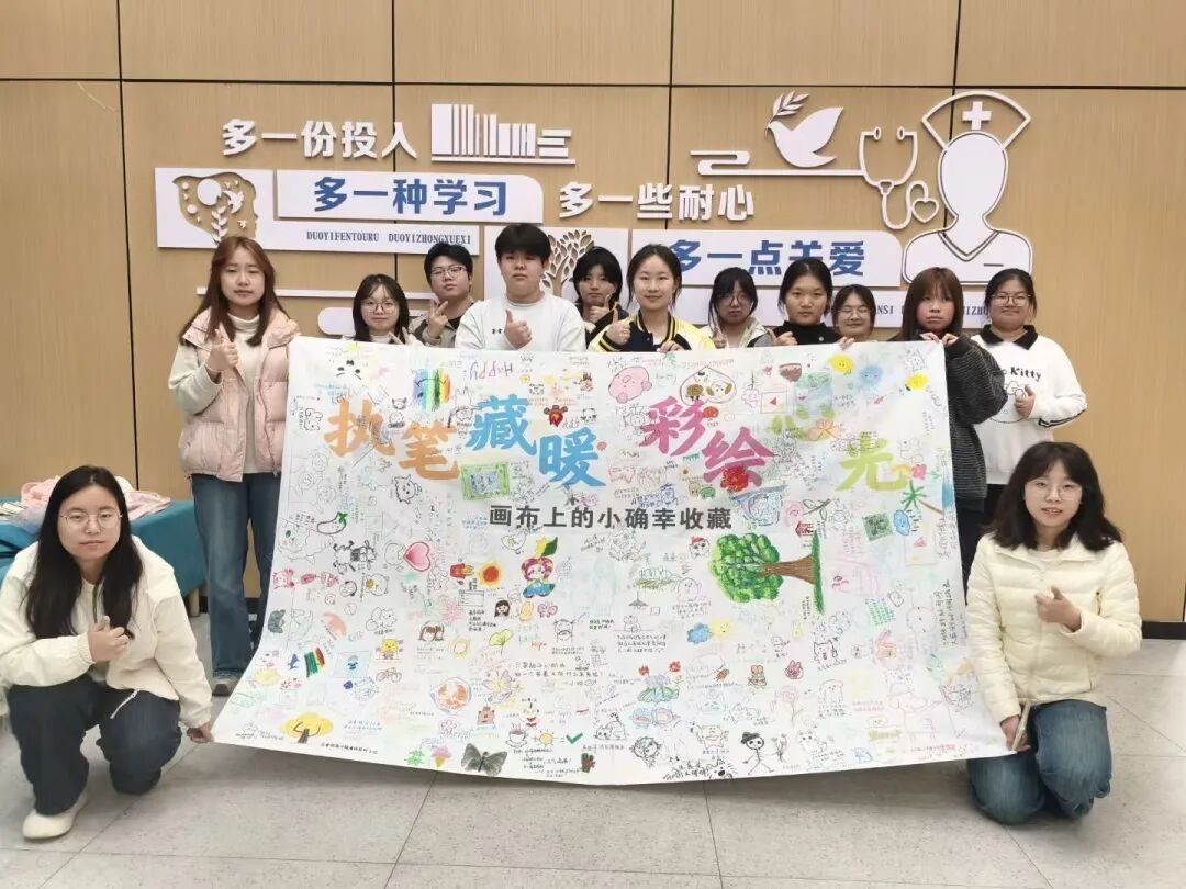 为了引导大学生关注生活中的积极元素,培育积极心理品质,缓解消极情绪,提升幸福感与归属感。护理与康复学院“愈见心聆”心理辅导站于2025年11月11日在“一站式”学生社区5号公寓一楼大厅开展“执笔藏暖,彩绘心光”活动。